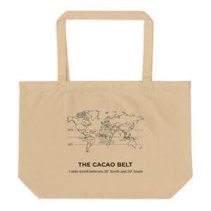 $32.00Cacao Belt Organic Travel Tote Some people chase summer. Cacao stays there. The Cacao Belt Travel Tote is for chocolate lovers who know exactly where the good stuff grows. Featuring our witty “I only travel between 20°N and 20°S” cacao belt map printed on both sides, this large organic cotton tote carries your essentials with…