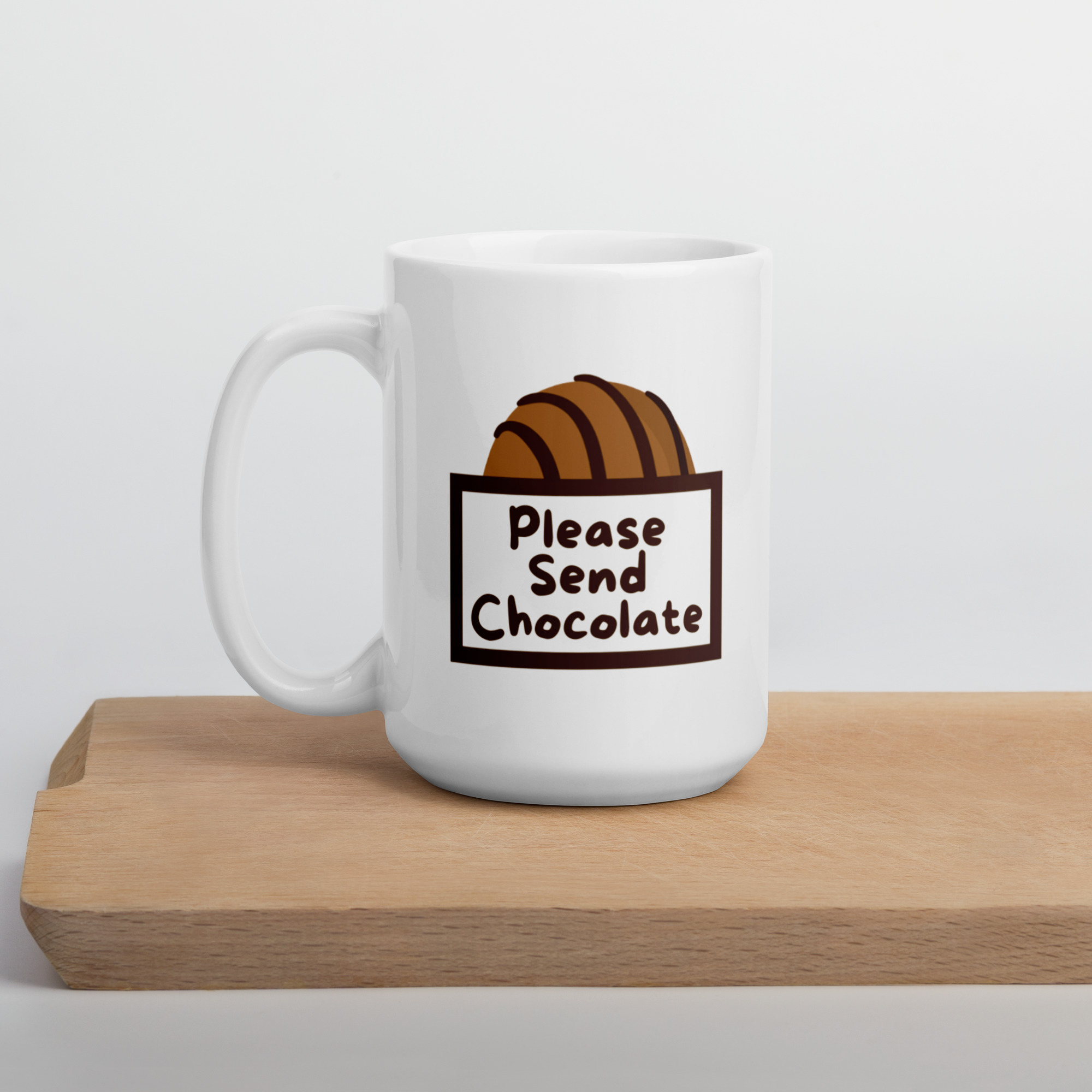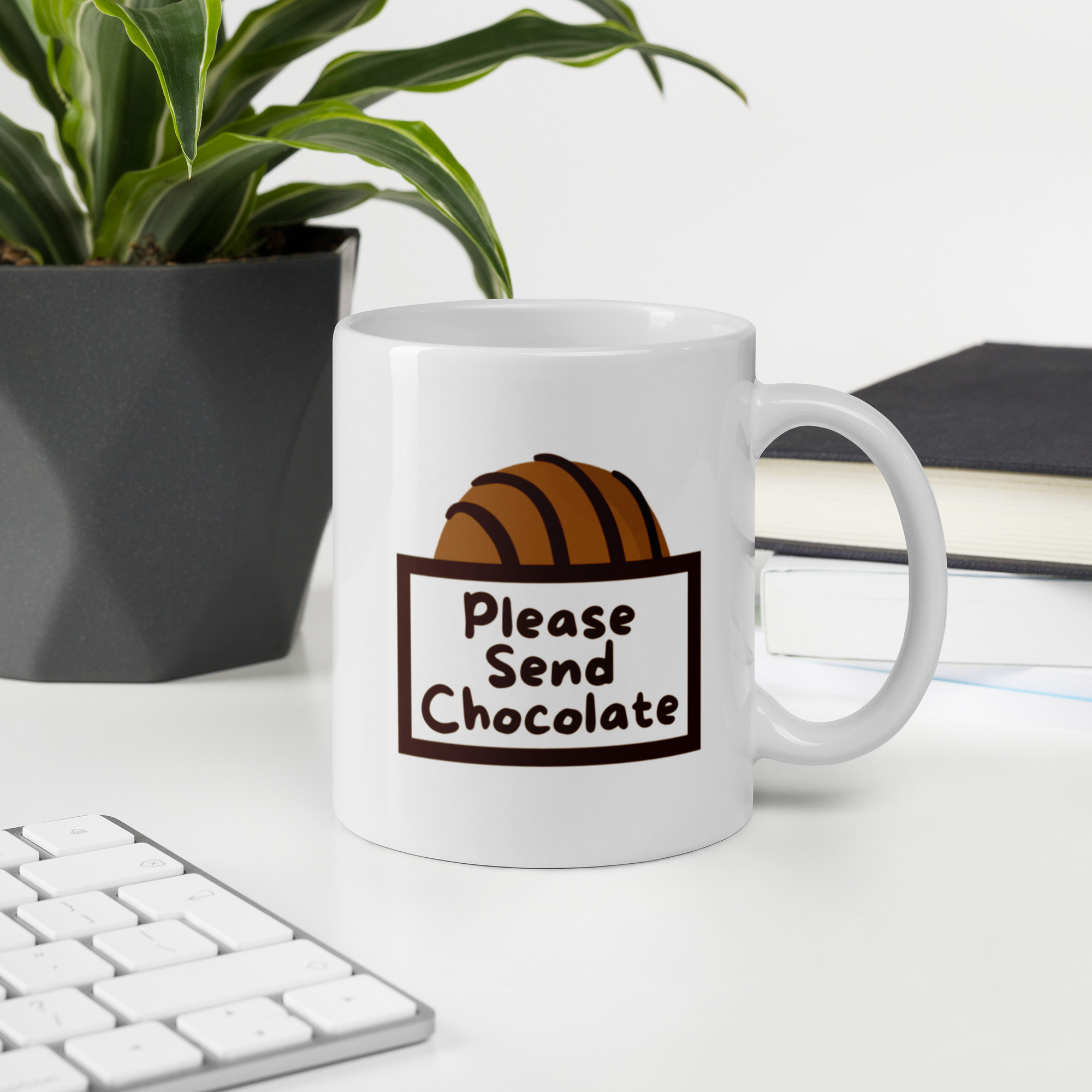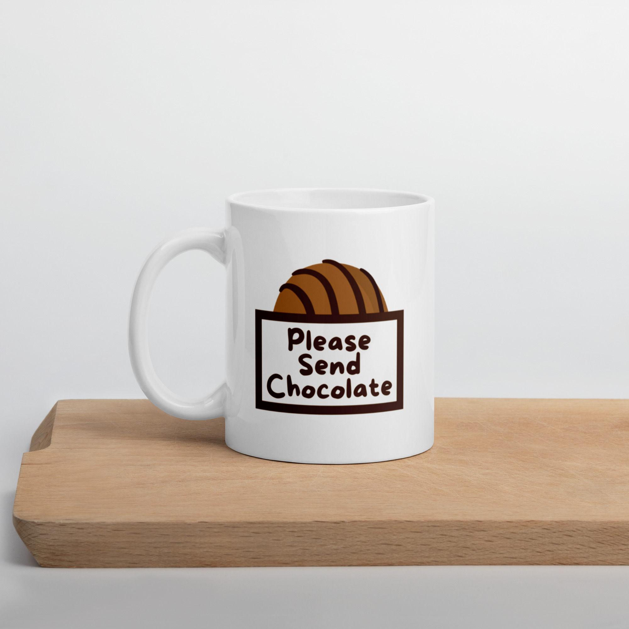 The PSC Official Mug features the Please Send Chocolate logo on a classic, clean design that feels right at home in your kitchen, office, or desk setup. Simple. Recognizable. Slightly persuasive.