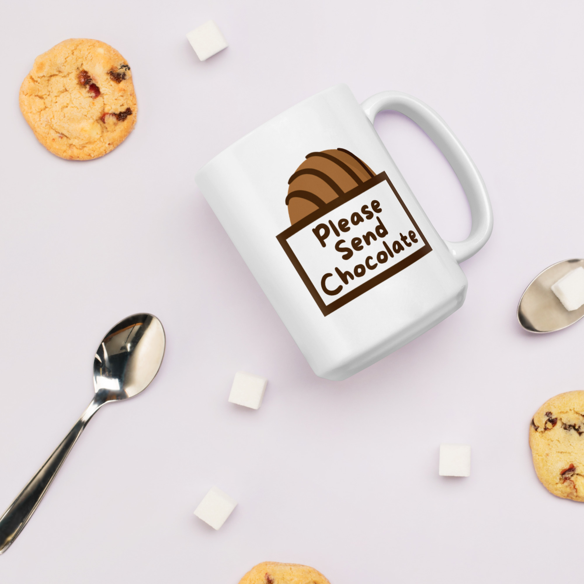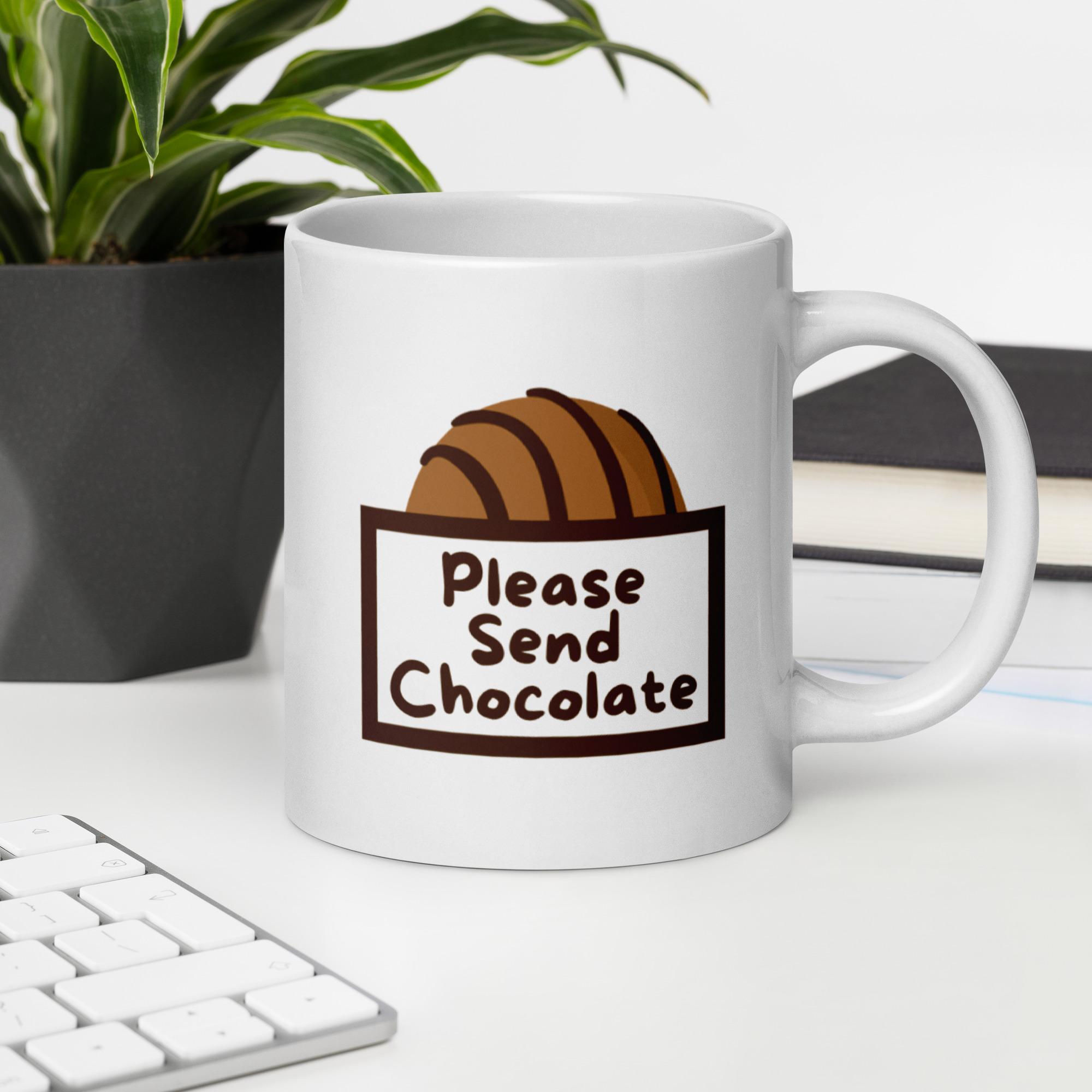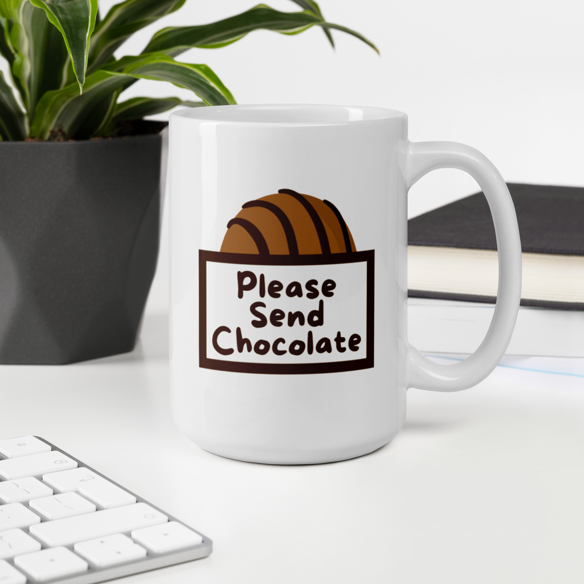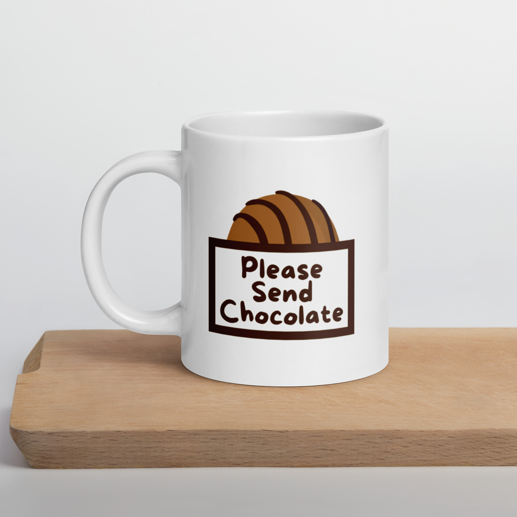 The PSC Official Mug features the Please Send Chocolate logo on a classic, clean design that feels right at home in your kitchen, office, or desk setup. Simple. Recognizable. Slightly persuasive.